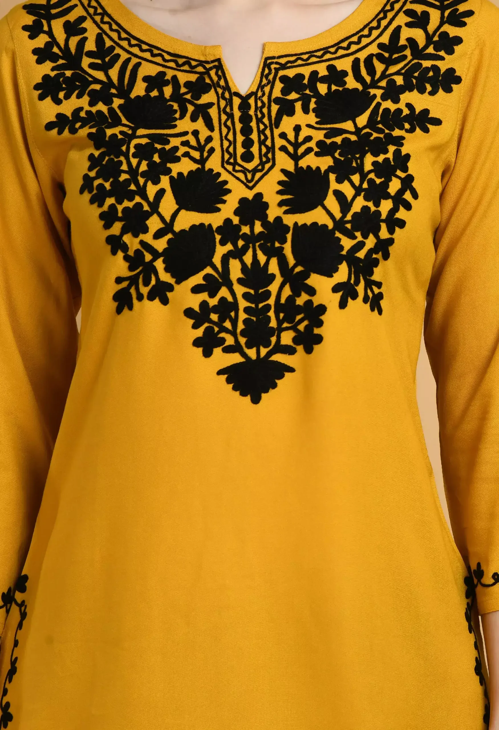 Mustard Colored Kashmiri Short Kurti